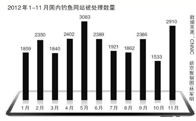 中國IDC評述網12月06日報道:中國互聯(lián)網絡信息中心(CNNIC)昨日發(fā)布了《2012年中國反釣魚網站聯(lián)盟工作報告》(下稱《報告》)。《報告》顯示,2012年1月1日至11月20日,中國反釣魚網站聯(lián)盟共處理釣魚網站24535個,較2011年同期下降33%。