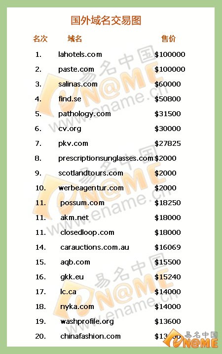 編輯標注:數(shù)據(jù)主要以本平臺報道的域名排名,域名交易時間上有出入,本排名榜只羅列幾個主要域名交易案例,因數(shù)據(jù)和未公開域名交易榜單無列入。